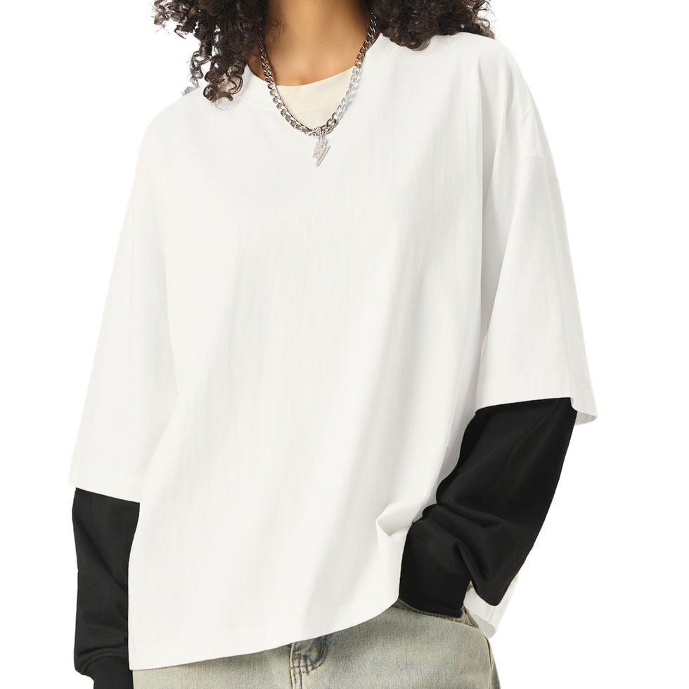 FIMI Layered Contrast Sleeve Cotton T-Shirt
